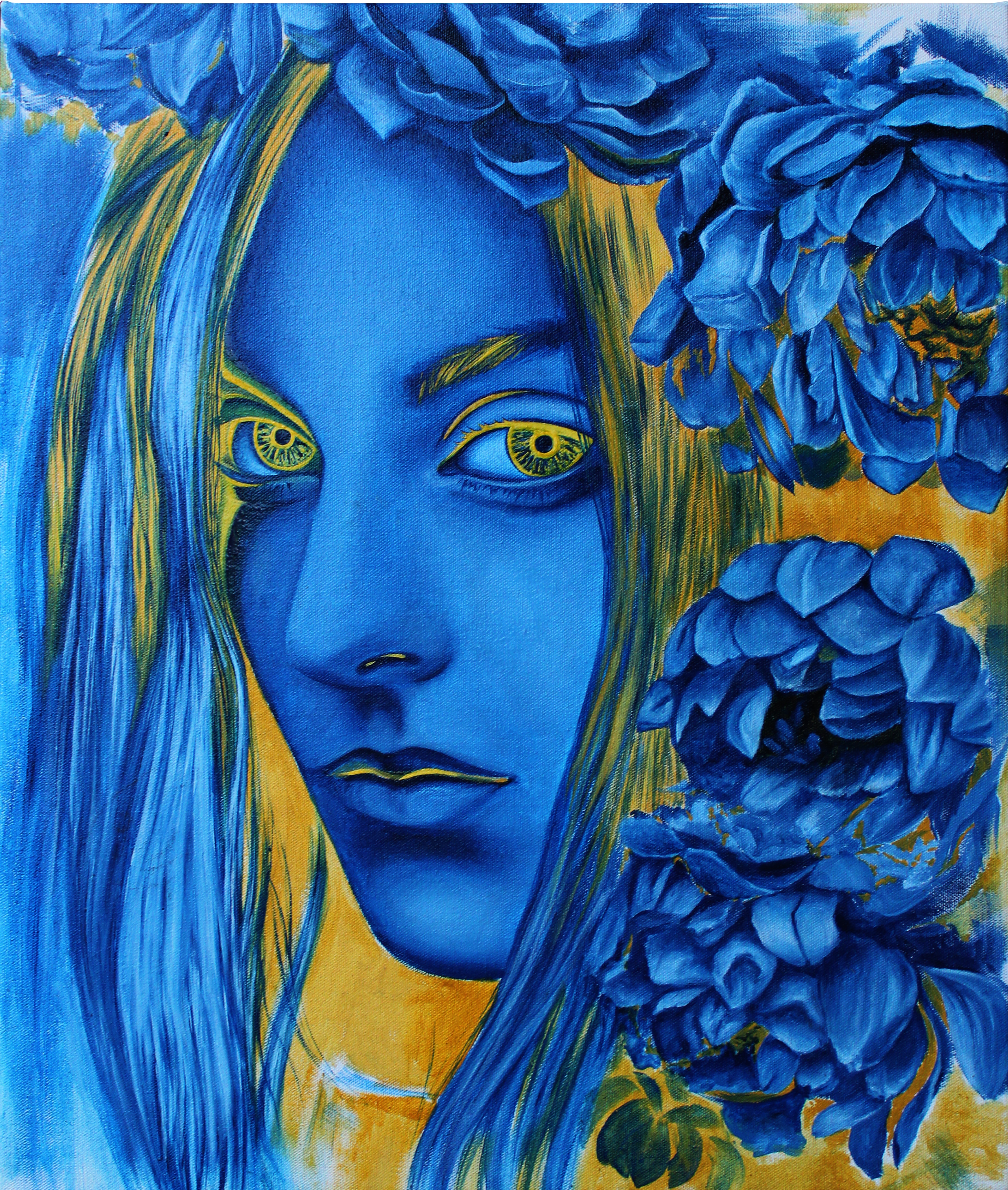 The painting "Mavka" captivates with its portrayal of a mystical mermaid, a creation from Ukrainian folklore. Her presence is rendered in shades of yellow and blue, which resonate with the essence of Ukrainian spirit. The girl, with her gaze released, skillfully captures the viewer's soul, beckoning them to open windows to the realm of mythical narratives.